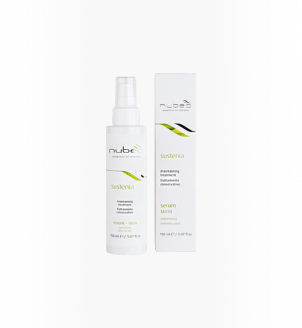 Nubea Sustenia Volumizing Serum, enriched with Essential Oils and Vegetal Extracts, detangles and volumizes thin hair, providing body, texture, and revitalised shine.